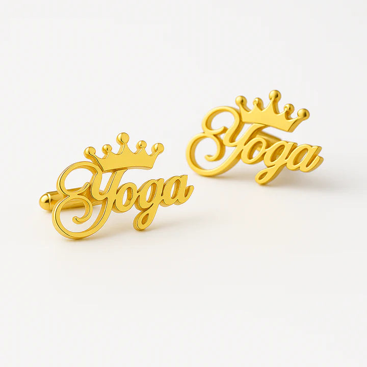 Add a touch of royalty to your style with our Custom Name Cufflins with Crown Design. These elegant, personalized cufflins are crafted with precision from high-quality materials, featuring your chosen name crowned in a regal design. Perfect for gifting or making a bold fashion statement, they combine luxury with individuality.