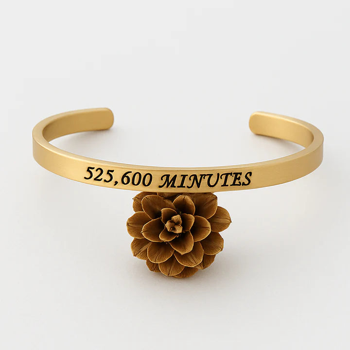 Discover timeless elegance with our handcrafted gold cuff bracelet, expertly designed to complement any style. Featuring the meaningful engraving "525,600 MINUTES," this piece is perfect for those who cherish every moment. Made with premium materials and a brushed matte finish, the bracelet offers both durability and sophistication. Whether for yourself or a special gift, its minimalist design and personalized touch make it an ideal accessory for everyday wear or special occasions.