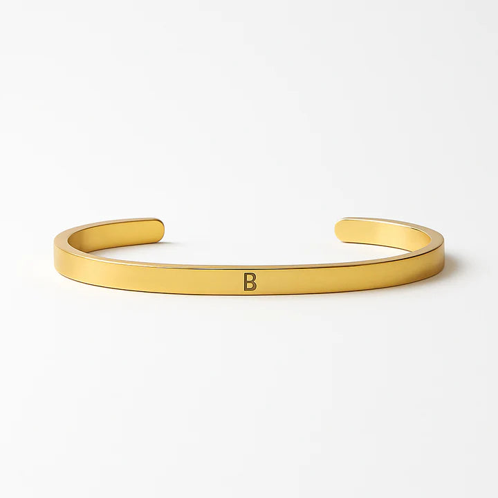 Elevate your style with this Elegant Gold Cuff Bracelet, featuring a sleek minimalist design and a personalized initial β€œB” engraving. Crafted with a polished gold finish, this lightweight and adjustable cuff adds a touch of sophistication to any outfit. Perfect for everyday wear or special occasions, it makes a thoughtful gift for yourself or a loved one. Embrace timeless elegance and subtle personalization with this must-have accessory.