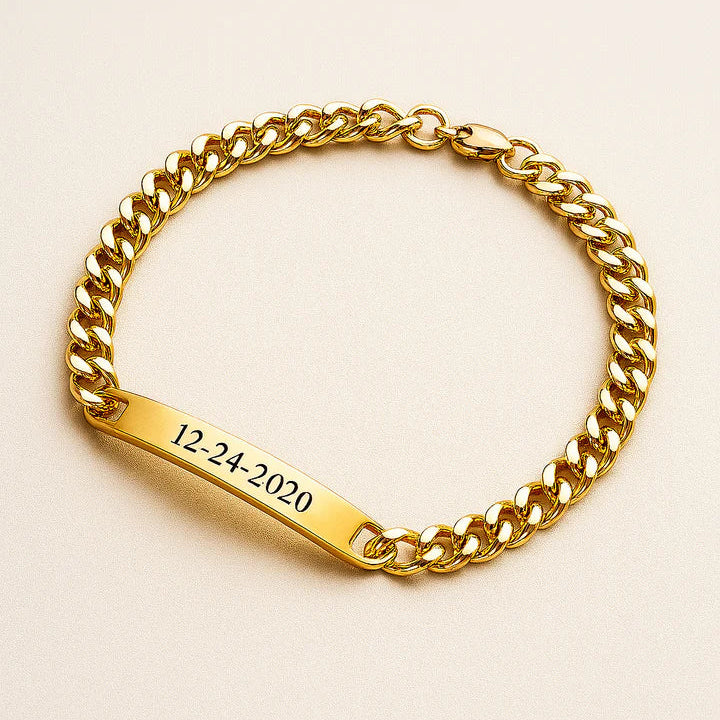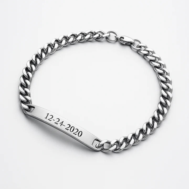 Ideal for both men and women, this bracelet combines timeless style with sentimental value. Whether it's a gift for a loved one or a personal keepsake, this engraved bracelet adds a touch of class and emotion to any outfit.