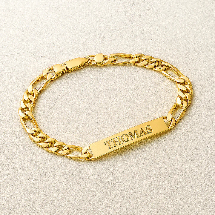 Add a timeless touch of elegance with our Personalized Gold Name Bracelet, expertly crafted for those who value both style and sentiment. Featuring a bold curb chain and a sleek, rectangular nameplate, this bracelet is customized with the name THOMAS (or your choice of name), making it the perfect gift for men, women, or teens.