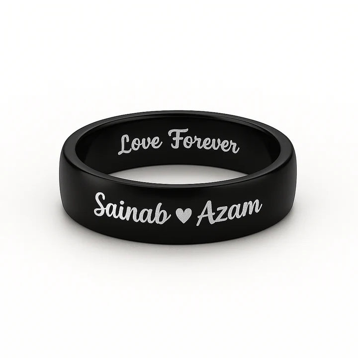 Celebrate your eternal bond with our Custom Engraved Couple Ring, a timeless symbol of love and commitment. Beautifully crafted in a radiant Shine finish, this personalized ring features your names engraved on the outside and a heartfelt message on the inside — making it a perfect keepsake for couples.