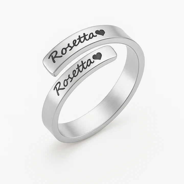 Celebrate love, identity, or a special bond with our Personalized Name Ring, custom engraved with the name Rosetta and a charming heart detail. Crafted with a luxurious plated finish, this adjustable open band design offers both elegance and comfort. Whether it’s a gift for her, a promise ring, or a custom keepsake, this stunning ring is a timeless piece made to be cherished.