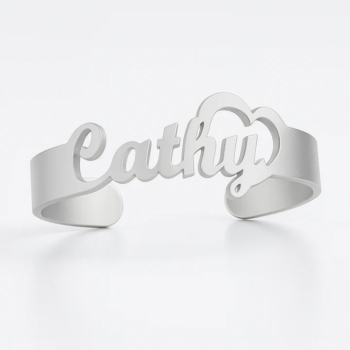 Make a powerful statement with this custom 24ct gold platted wide cuff bracelet, beautifully engraved with the name Cathy and accented by a heart-shaped design. With its thick, polished band and bold lettering, this bracelet is the perfect blend of luxury and personality.