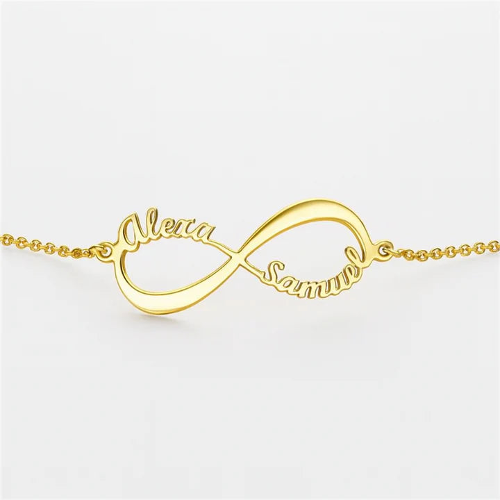 Celebrate a love that lasts forever with this stunning custom infinity name bracelet, engraved with the names Alexa and Samuel. Crafted from high-quality silver-plated stainless steel, this bracelet features a sleek infinity symbol design—representing endless love, loyalty, and connection.
