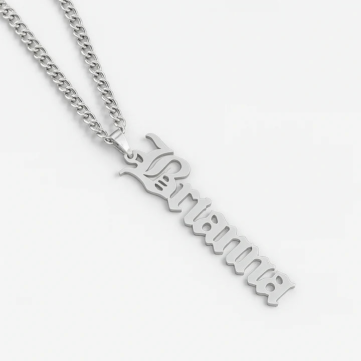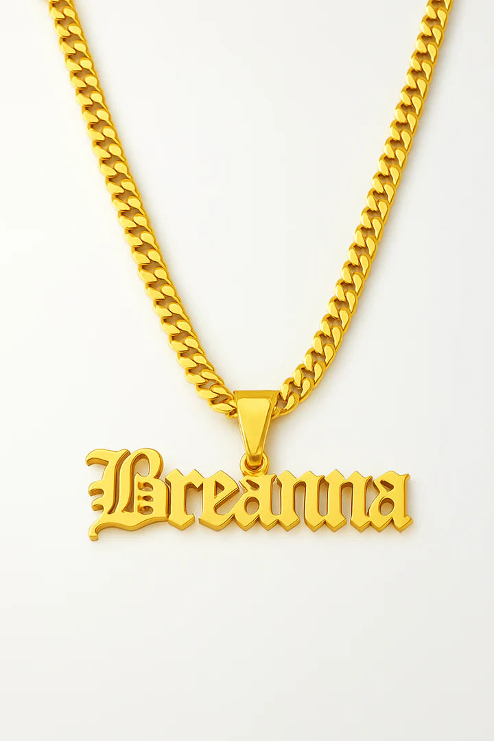 Make a bold and timeless statement with our Custom Name Necklace, designed to turn heads and elevate your look. Featuring a unique Gothic-style font and crafted in radiant plating, this personalized pendant is the perfect blend of street style and classic elegance.