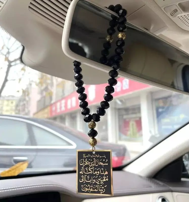 Enhance your car’s interior with this beautiful Islamic Car Hanging Dua Pendant, designed to bring both spiritual protection and elegant style to your daily drive. The pendant features a finely crafted square plaque with Arabic Islamic supplication (Dua) engraved in gold on a black background, paired with premium faceted tasbeeh beads for a sophisticated look.