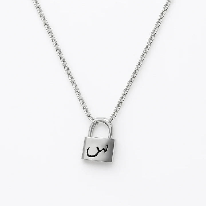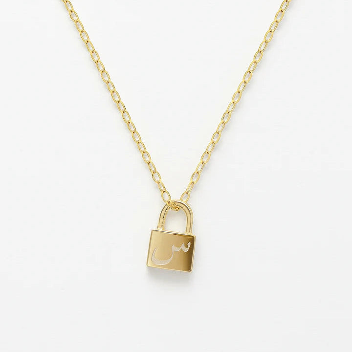 Unlock elegance with this Custom Arabic Initial Lock Necklace, a symbol of strength, identity, and timeless style. Crafted with high-quality gold-plated stainless steel, this minimalist padlock pendant features a personalized Arabic letter engraving, creating a bold yet meaningful statement piece.