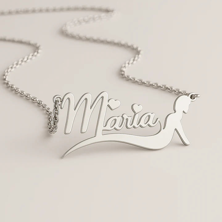 Celebrate magic and individuality with our Personalized Mermaid Name Necklace – a stunning piece crafted for those who love the sea, sparkle, and self-expression. Featuring a custom name in elegant script, this necklace is enhanced with adorable heart accents and a graceful mermaid silhouette, symbolizing beauty, strength, and freedom.