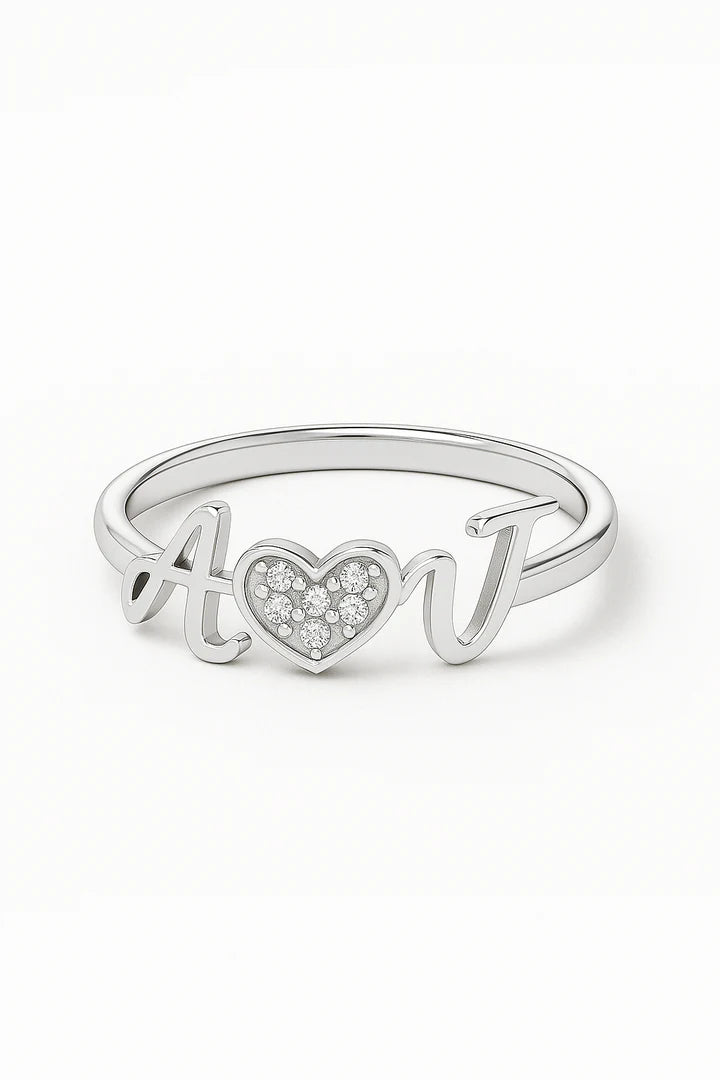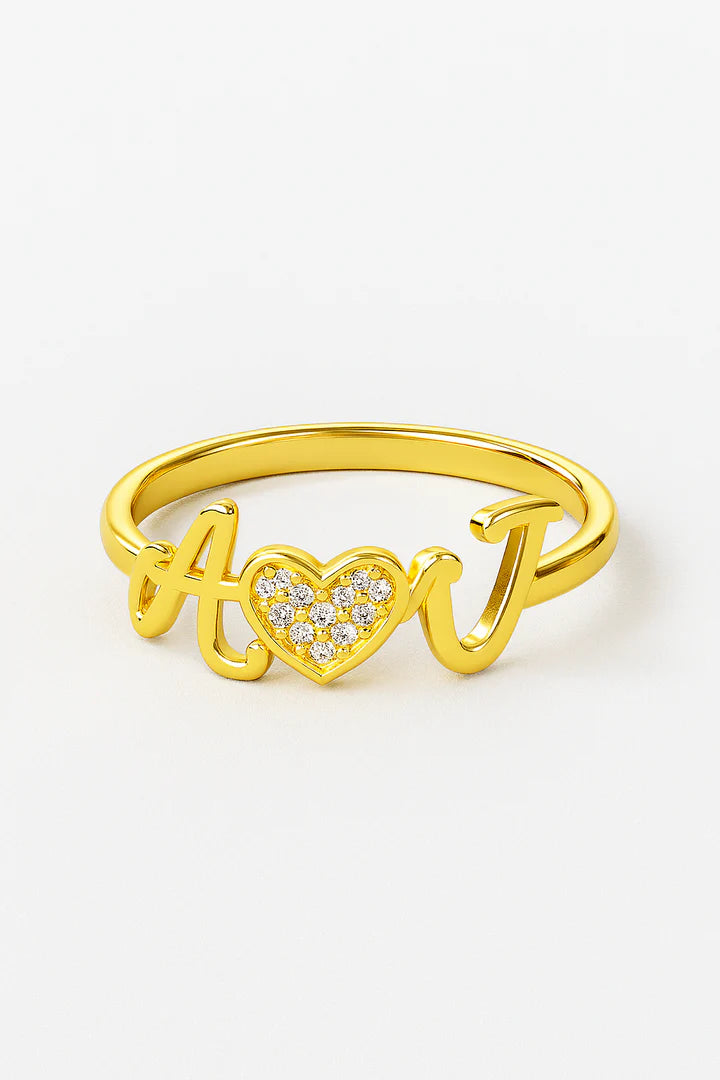 Custom Initials Ring with Diamond Heart – Personalized 24CT Gold Plated Couple Ring