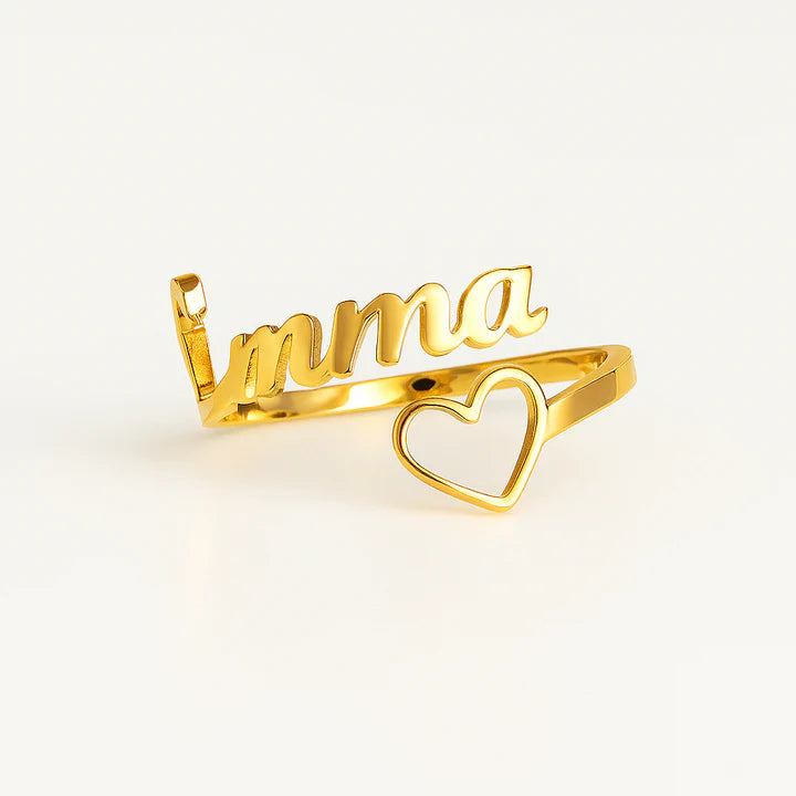 Celebrate love and individuality with this stunning Custom Name Ring, beautifully personalized with the name "Imma" and accented by an elegant open heart design. Crafted from durable stainless steel and finished in luxurious 24CT gold plating, this adjustable ring combines style, sentiment, and sophistication.