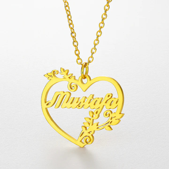 Make a lasting impression with our Custom Floral Heart Name Necklace, a stunning gold pendant that blends romance and personalization in one elegant design. Featuring your custom name in graceful script, the heart is beautifully adorned with delicate floral accents, symbolizing love, growth, and beauty.