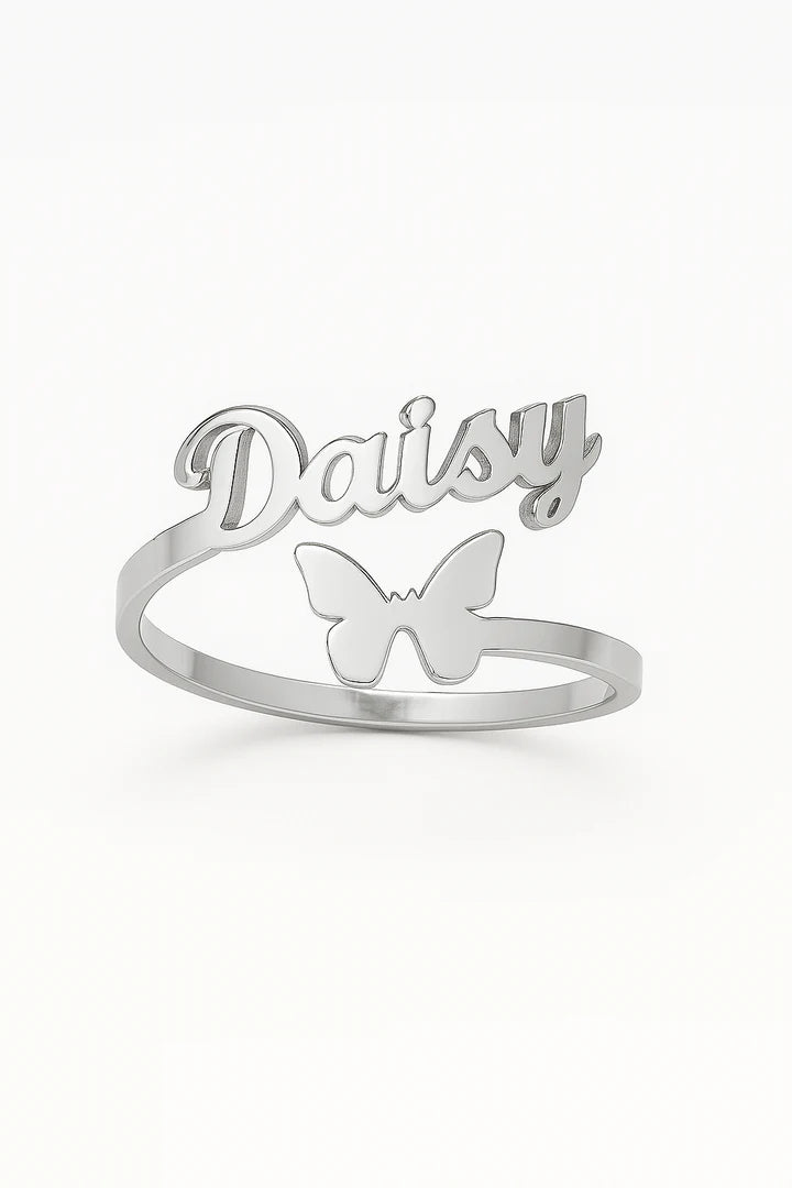 Custom Name Ring with Butterfly – Personalized 24CT Gold Plated Jewelry for Women & Girls